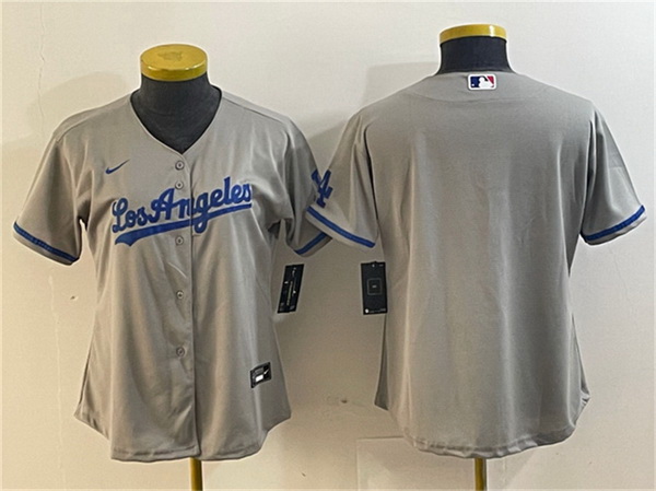 - Women Los Angeles Dodgers Grey Team Big Logo Stitched Jersey 28Run Small 29