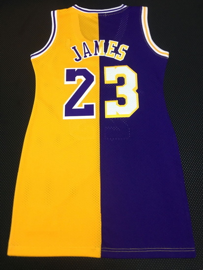- Women Los Angeles Lakers 23 Lebron James Dress Stitched Jersey Yellow Purple Split