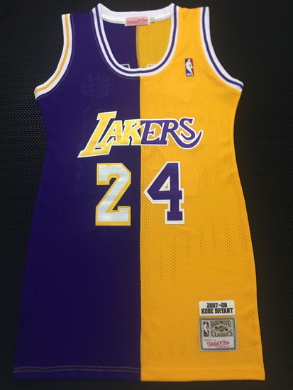 - Women Los Angeles Lakers 23 Lebron James Dress Stitched Jersey Yellow Purple Split