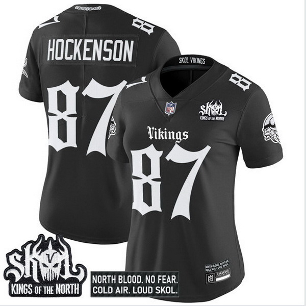 - Women Minnesota Vikings 87 T J Hockenson White Winter Warrior Limited Stitched Jersey