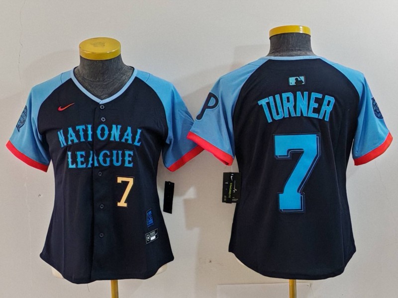 - Women National League 7 Trea Turner Navy 2024 All Star Limited Stitched Baseball Jersey 5