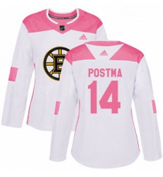- Womens Adidas Boston Bruins 74 Jake DeBrusk Authentic WhitePink Fashion NHL Jersey