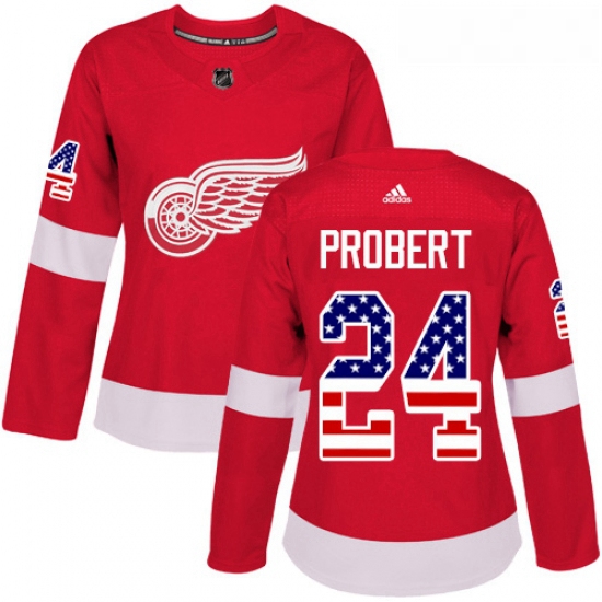 - Womens Adidas Detroit Red Wings 24 Bob Probert Authentic Red USA Flag Fashion NHL Jersey