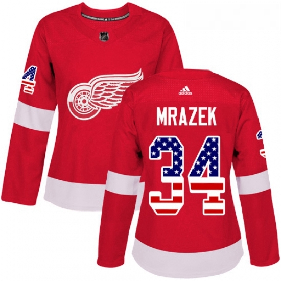 - Womens Adidas Detroit Red Wings 34 Petr Mrazek Authentic Red USA Flag Fashion NHL Jersey