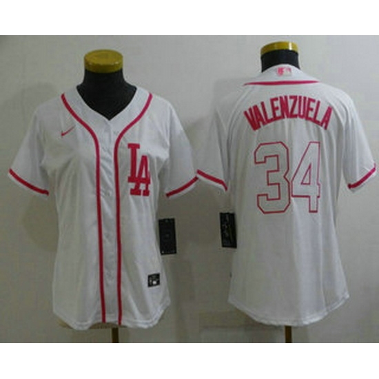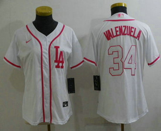 - Women Los Angeles Dodgers 34 Toro Valenzuela Pink White Stitched Baseball Jersey