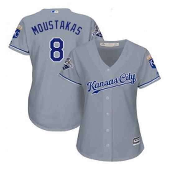 - Womens Majestic Kansas City Royals 8 Mike Moustakas Replica Grey Road Cool Base MLB Jersey