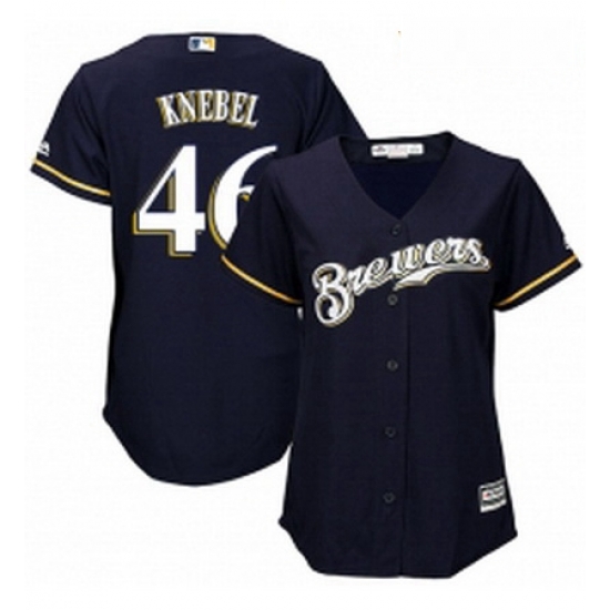 - Womens Majestic Milwaukee Brewers 46 Corey Knebel Replica Grey Road Cool Base MLB Jersey