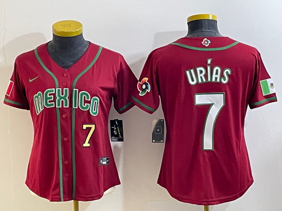 - Women's Mexico Baseball #7 Julio Urias Number 2023 Green World Classic Stitched Jersey1