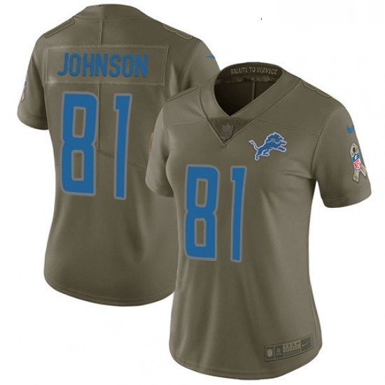 - Nike Lions #13 T J Jones Olive Womens Stitched NFL Limited 2017 Salute to Service Jersey