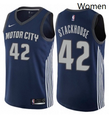 - Womens Nike Detroit Pistons 42 Jerry Stackhouse Authentic Silver NBA Jersey Statement Edition