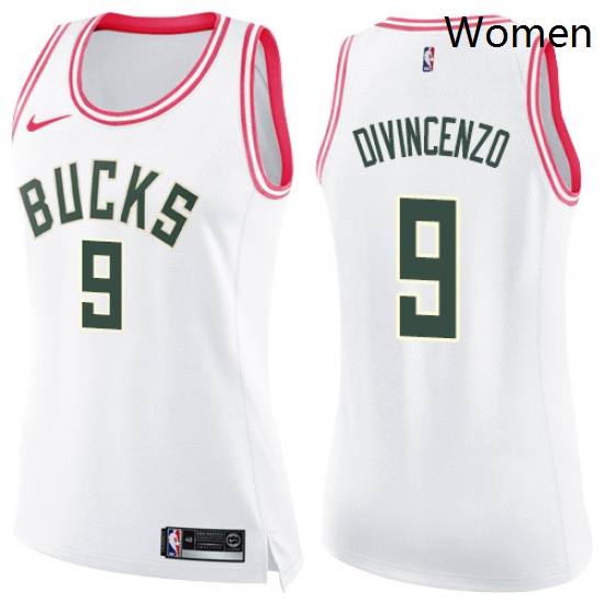 - Womens Nike Milwaukee Bucks 9 Donte DiVincenzo Swingman White Pink Fashion NBA Jersey