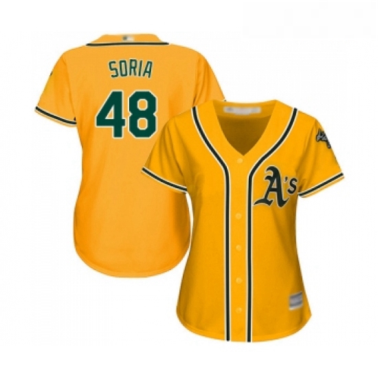 - Womens Oakland Athletics 28 Matt Olson Replica Gold Alternate 2 Cool Base Baseball Jersey