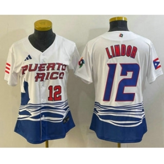 - Womens Puerto Rico Baseball 12 Francisco Lindor 2023 White World Classic Stitched Jersey