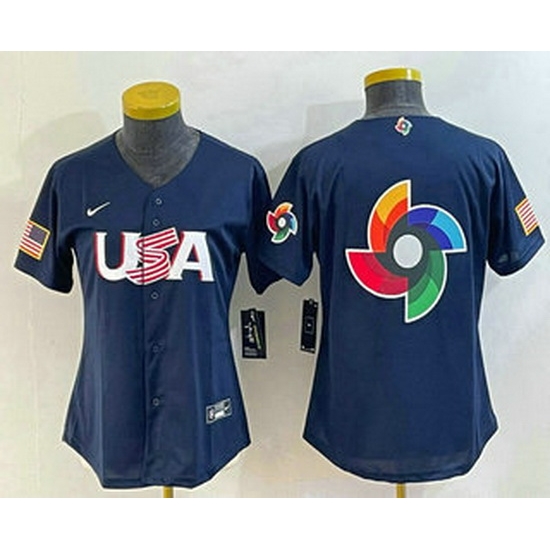 - Women's USA Baseball Blank 2023 Navy World Classic Stitched Jerseys