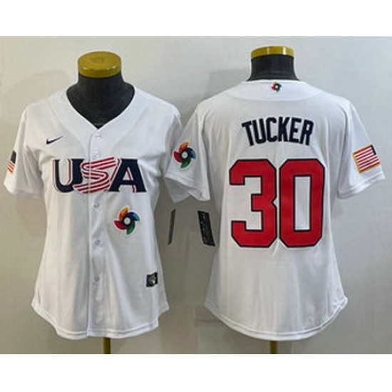 - Women's USA Baseball #30 Kyle Tucker 2023 White World Classic Stitched Jerseys