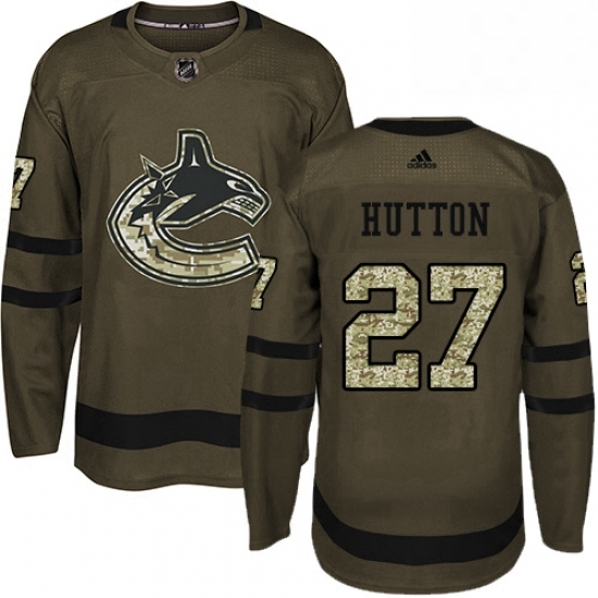- Womens Adidas Vancouver Canucks 27 Ben Hutton Authentic Green Salute to Service NHL Jersey