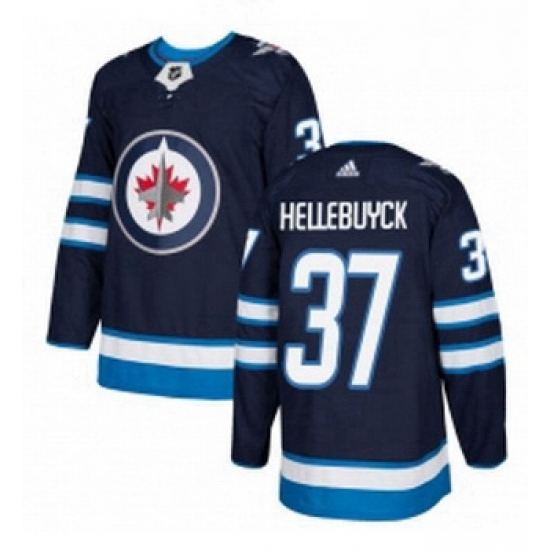 - Youth Adidas Winnipeg Jets 37 Connor Hellebuyck Premier Navy Blue Home NHL Jersey