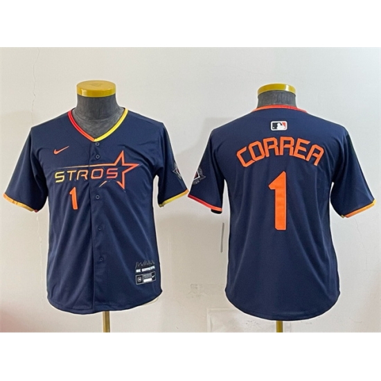 - Youth Majestic Houston Astros 1 Carlos Correa Replica Orange Alternate Cool Base MLB Jersey