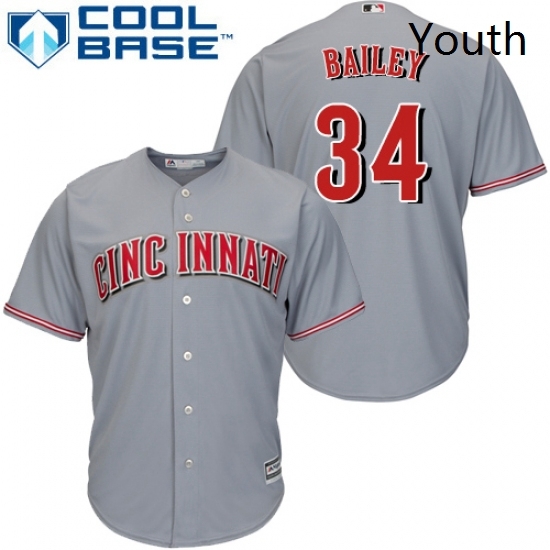 - Youth Majestic Cincinnati Reds 34 Homer Bailey Replica Grey Road Cool Base MLB Jersey