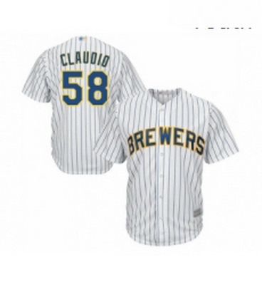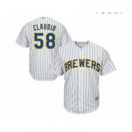 - Youth Milwaukee Brewers 58 Alex Claudio Replica White Home Cool Base Baseball Jersey