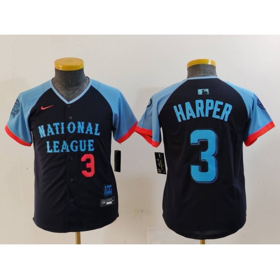 - Youth National League 3 Bryce Harper Navy 2024 All Star Limited Stitched Baseball Jersey 3