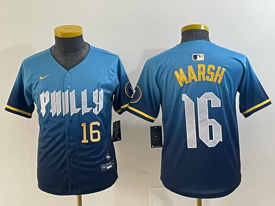 - Youth Philadelphia Phillies 28 Alec Bohm Blue Cool Base Stitched Baseball Jersey 1