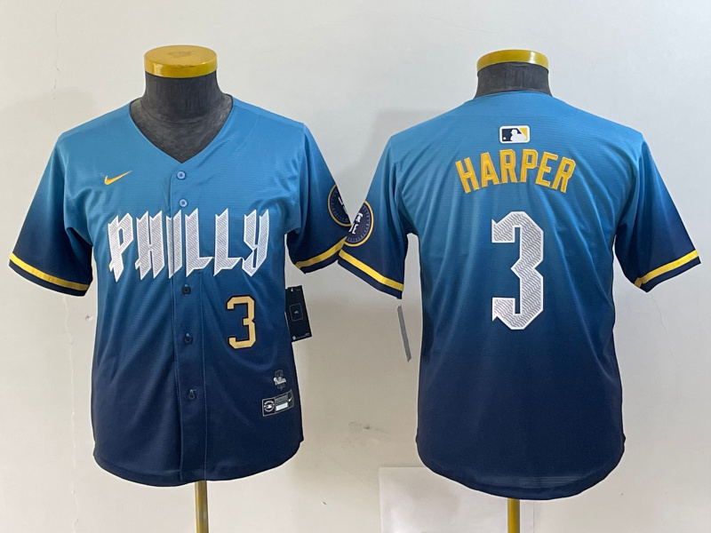 - Youth Philadelphia Phillies 7 Trea Turner Blue 2024 City Connect Limited Stitched Jersey 3