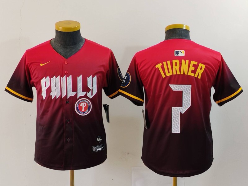 - Youth Philadelphia Phillies Trea Turner #7 Light Blue Stitched MLB jersey