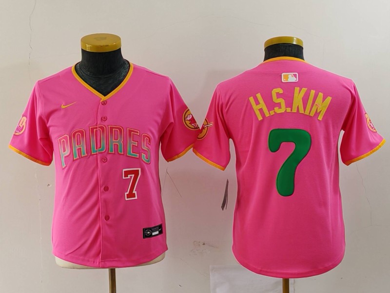 - Youth San Diego Padres 7 Ha Seong Kim Pink Stitched Baseball Jersey 4