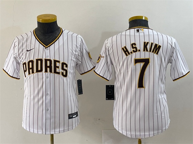 - Youth San Diego Padres 7 Ha Seong Kim White Stitched Baseball Jersey
