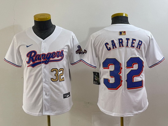 - Youth Texas Rangers 53 Adolis Garcia White Gold Cool Base Stitched Baseball Jersey