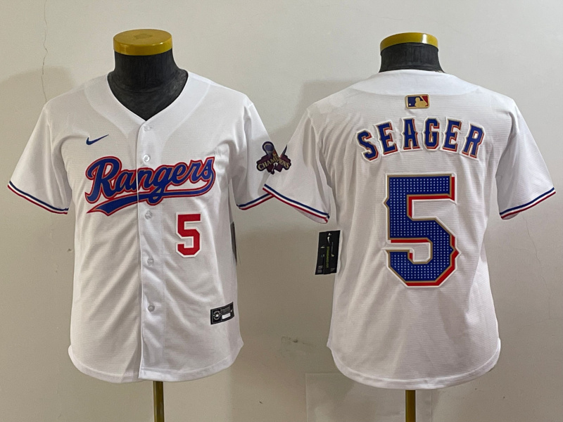 - Youth Texas Rangers 32 Evan Carter White Gold Stitched Baseball Jersey 5